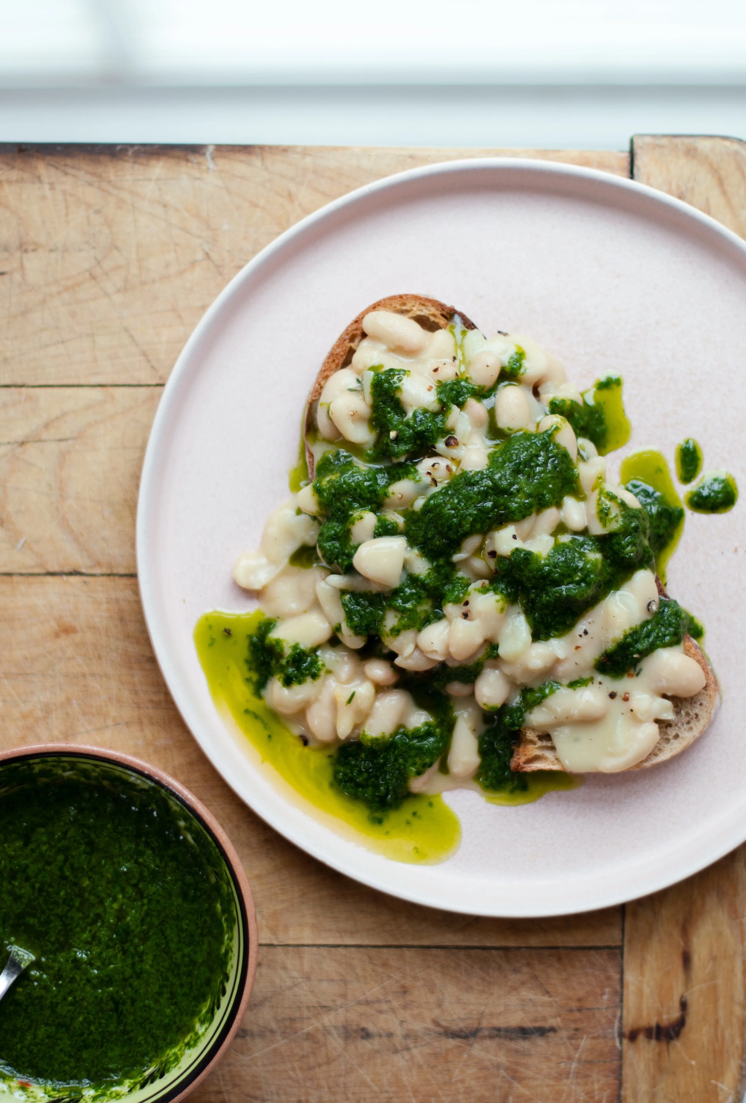 Creamy White Bean Bruschetta with Wild Garlic Oil