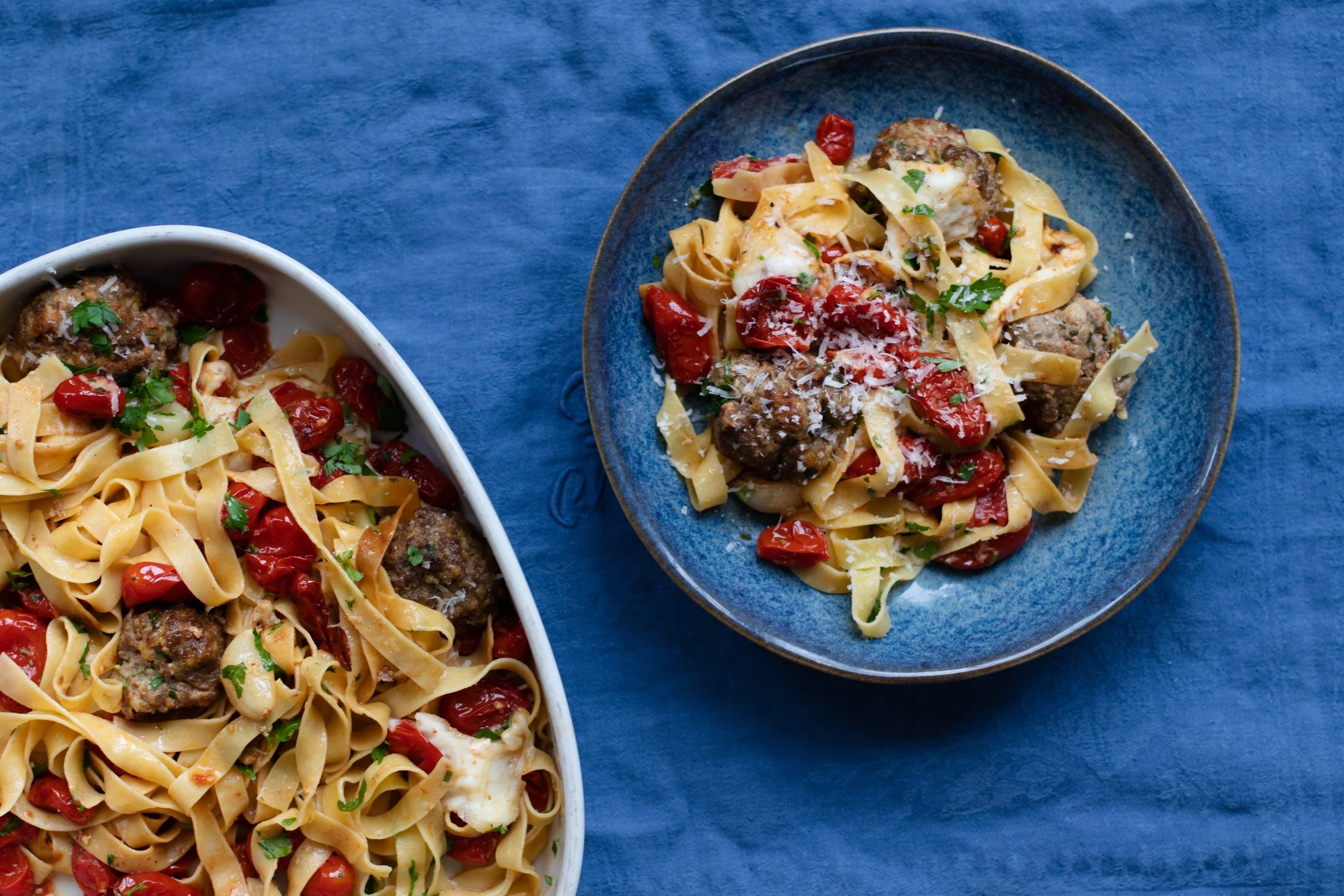 Baked Meatballs and Cherry Tomato Tagliatelle